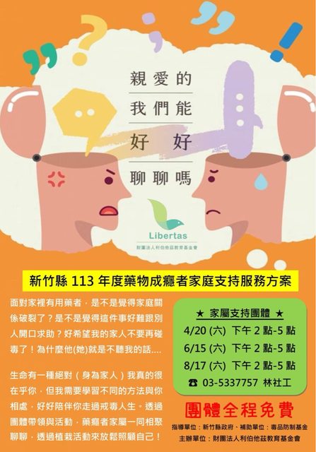 標題[情報] !免費報名!成人藥癮者家屬支持團體