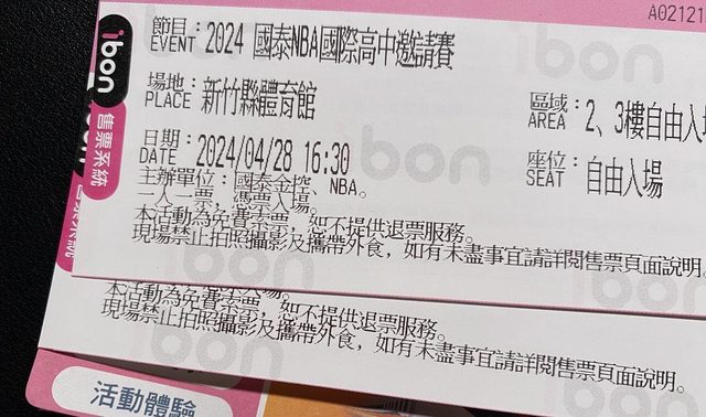 標題[贈送] 國泰NBA國際高中邀請賽票券 (贈出)
