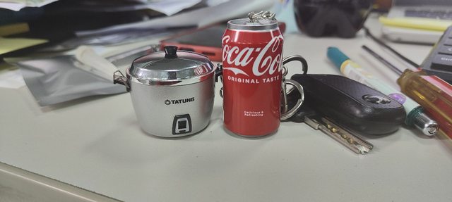 車鑰匙是跟一個大同電鍋造型的icash還有可口可樂造型的悠遊卡扣在一起