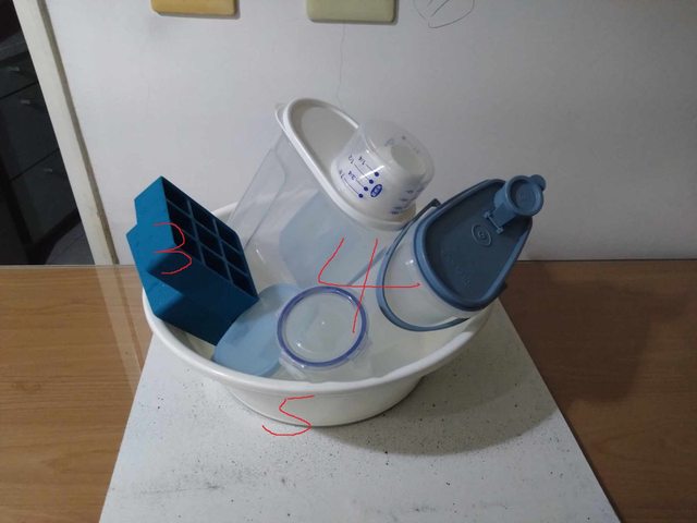 3. 製冰盒-暫送出 4. 水壺+杯子+米罐-暫送出 5. 臉盆