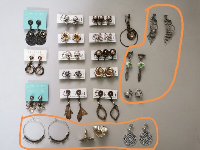 3.夾式耳環(圓圈標示處)、穿式耳環(圓圈標示處)