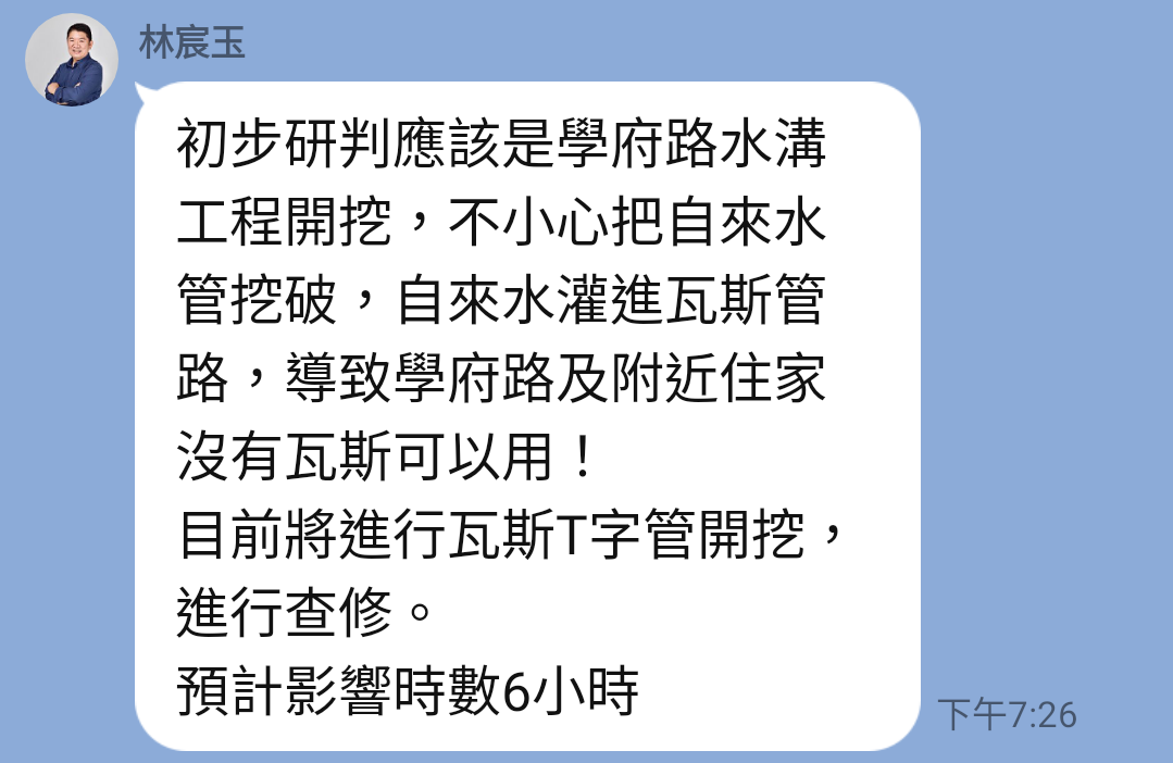 推 mochagirl : 水溝施工挖破管線,水流進瓦斯管線,正在搶救中 06/24 23:23