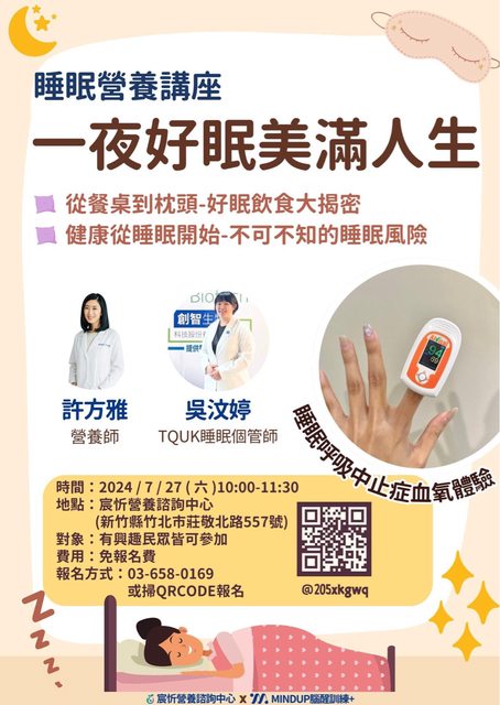 標題[情報] 睡眠營養講座 睡眠血氧量測體驗