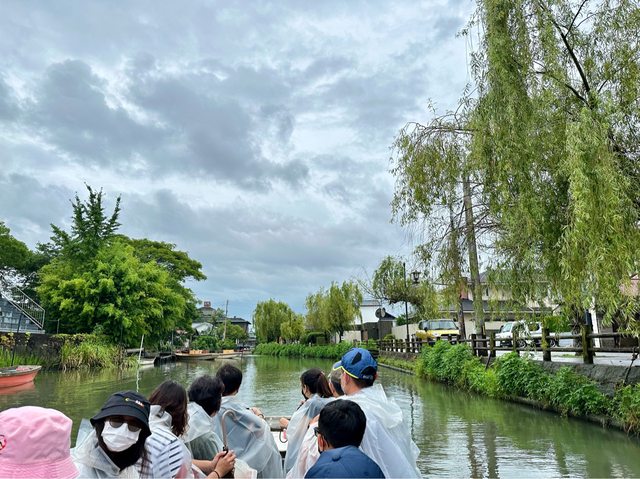 抵達西鐵柳川時只是陰天想說真幸運,結果一搭上遊船就開始下雨(有提供厚雨衣),船伕