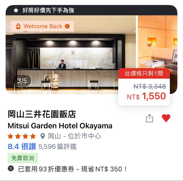 第三間:三井花園飯店 https://i.imgur.com/zPz4FI2.jpg
