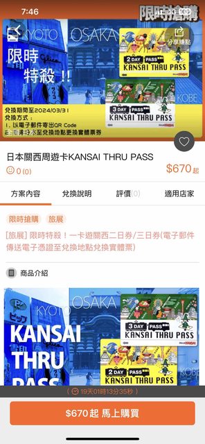 第一次發文,不知道這能不能算資訊 如果不合規定請再告知,謝謝 目前Gomaji有KTP的限時特價 二日券$670 三日券$945 提供給需要的版友參考 Ps.購買後需於2024/3/31前至日本指定地點兌換 買之前要看清楚說明唷 (關空、難波、天王寺、新大阪等處) https://i.imgur.com/QqUZkvN.jpeg