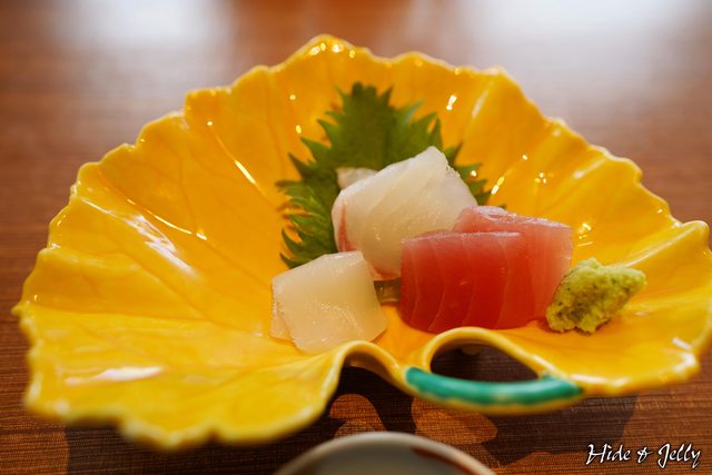 接著上來的是生魚片,五品刺身加上現磨芥末,看起來有鮪魚紅肉、中腹、鯛魚、鰤魚等