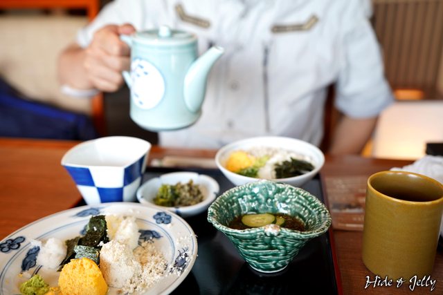 鬆樣,變成茶泡飯的配料,全部一起搭配高湯與白飯食用,成為像是鯛魚飯又不是的特殊