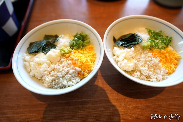 座位上已經擺放著鯛魚飯的配料以及豆腐,是一人一套餐的形式。