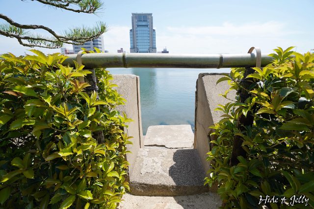 站在黑松前往水岸看去,就可以看到中央的駕籠台石與船著場,駕籠台石則是過去停放駕