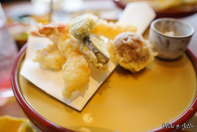 「壽」套餐才有的天婦羅,兩隻炸蝦、香菇、地瓜、青椒等,也是清爽不油膩的美味。
