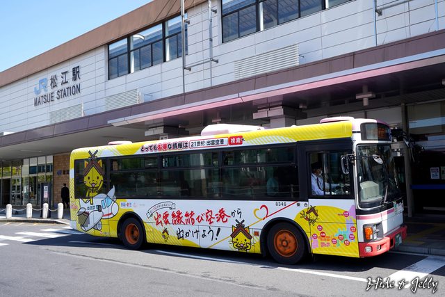 吃飽後我們從「大橋北詰」站搭乘巴士回到松江駅,意外看到有著松江出雲空彩繪的巴士
