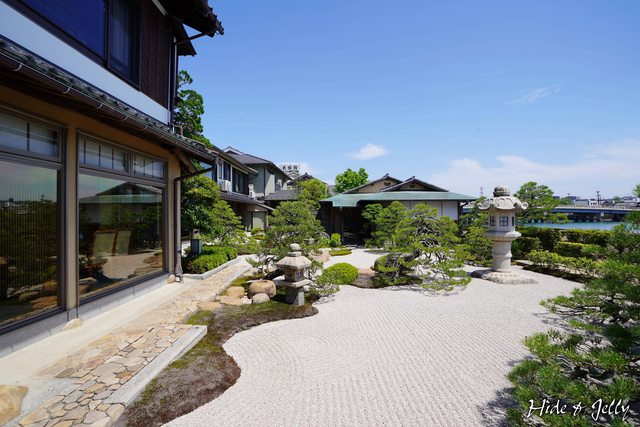 進入茶町商店街。經過了一些有趣的店家後,馬上可以看到有偌大前庭的日式建築,這裡