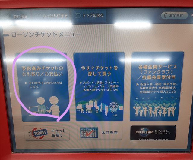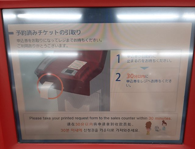 進去後找到loppi機台點一點,輸入購票資料,印出白單後去櫃檯給櫃員換成票券