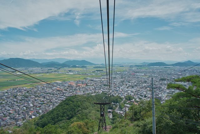搭纜車返回時,近江八幡市街近在眼前