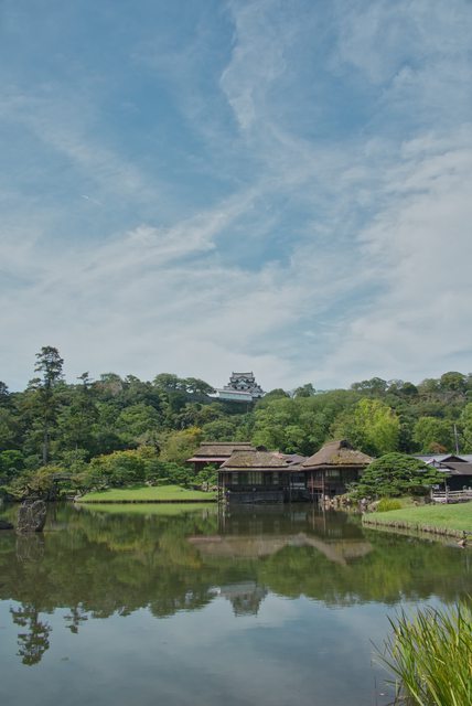 園區不大,在池畔附近可以看見彥根城的天守閣