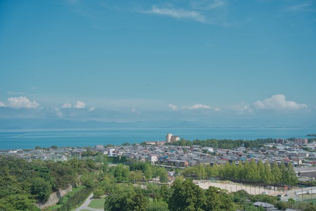 晴天之下,在北之丸址看得到壯闊的比良連峰,就位於琵琶湖另一端