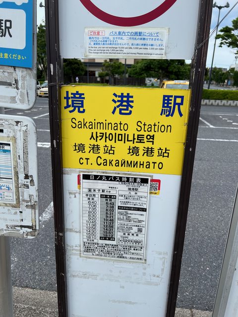 疫情前境港有往來韓國與俄羅斯的船班,附近的米子空港則能直飛香港,因此公車站牌有