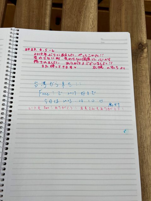 提供大家自由留言的交流本。沒想到前天才有台灣人因為Free!來過啊!