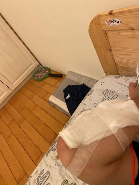 四肢都有擦傷以外,傷得最重的右手臂整片皮膚都磨光了