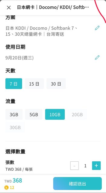 1. 讓售品項:kkday 7日總流量10G網咖