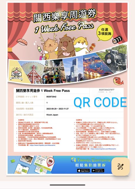 標題[讓售]關西樂享周遊券 - 剩一景點*4