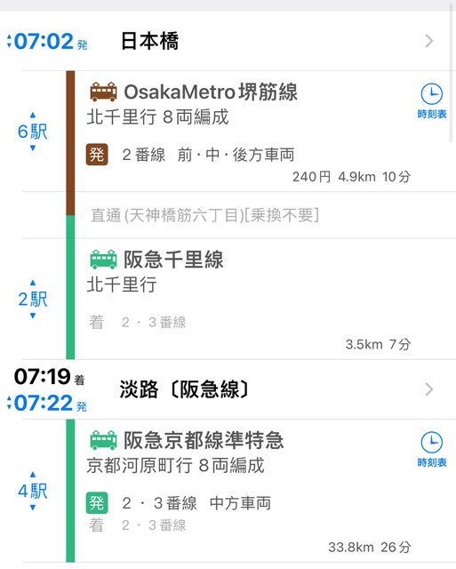 看乘換APP可以堺筋線到淡路,