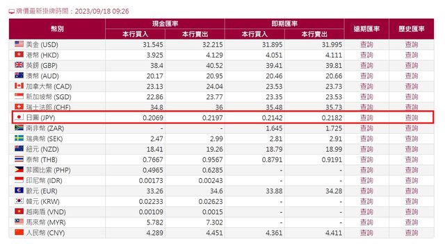 → sixtysixbear: 玉山銀行日幣匯率顯示是0.2187 09/18 13:38