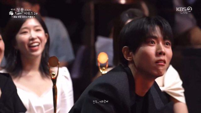 而且昣奏說憑什麼來頒獎那邊,周圍演員們"喔~~~"感到衝擊的聲音四起,