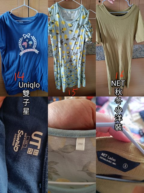 物品名稱:130-150公分女童青少女衣褲裙 Uniqlo Net NUV居多 物品狀況:有全新 或只穿一次 或只有下水 尺寸都在照片 欲換物品:任選三件廉換一串舒潔衛生紙 只求出清衣櫃 欲換地點:高雄市可討論