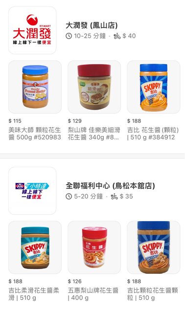 一圖換四包多力多滋108g或花生醬不限品牌(如下圖,全聯有售)。