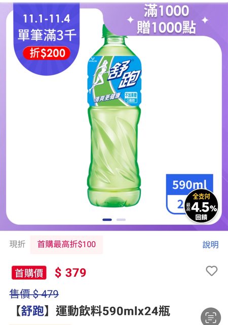 欲換物品:590ml舒跑8瓶