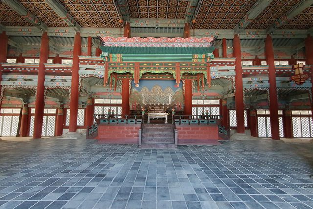 從廣場往仁政殿的方向拍,照片正中央的走道是朝鮮時代只有王才可以走的御道,讓我想