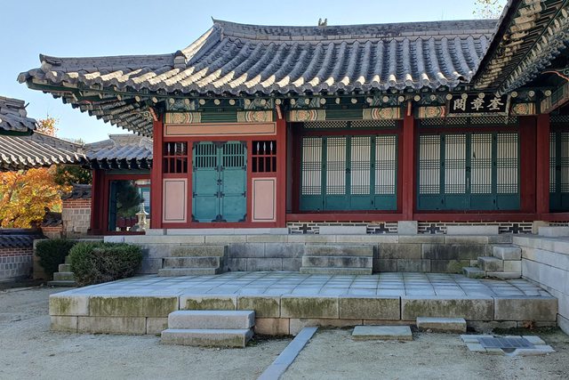這裡是園區 (11) 奎章閣,劇中同樣將這個空間當作奎章閣外觀使用。就是德任端湯藥給