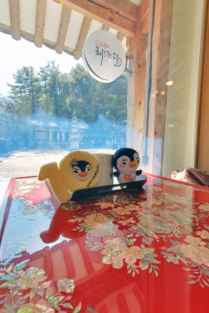 亮的太陽咖啡廳喝杯熱咖啡,在咖啡廳裡拍了一張 Pen Pen 認證照。