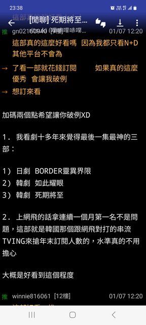 推 shumei: 哈~今年才剛開始就說會沒劇能超越,我還想看更好看的耶 01/12 14:07