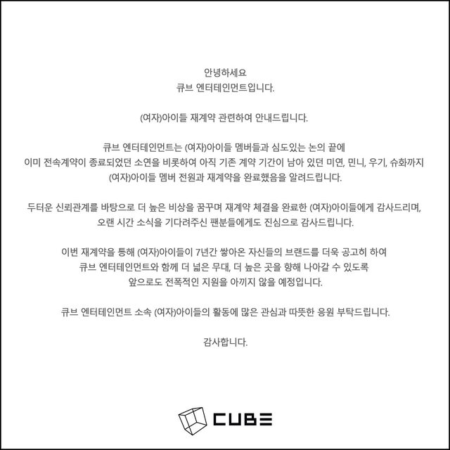 推 Sanish: 應該是Cube第一個續約的女團吧,公司真的 1.175.3.129 12/02 09:44