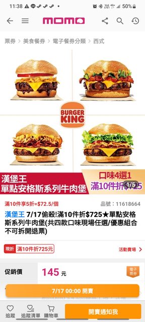 漢堡王 7/17偷殺!滿10件折$725★單點安格斯系列牛肉堡 (共四款口味現場任選/優惠組合不可拆開退票) https://i.imgur.com/kZdFfHm.jpg