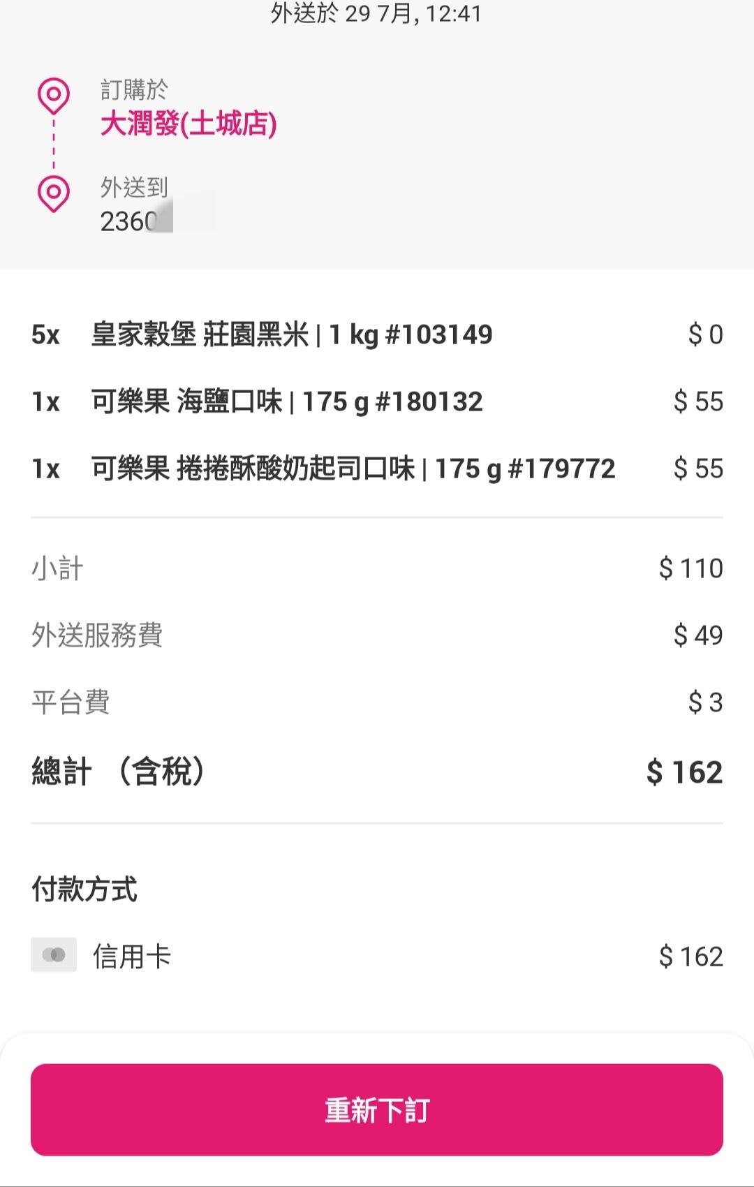 → jericho47: 可能是平台不同,上次全聯是UBER E 119.14.25.130 07/29 15:11