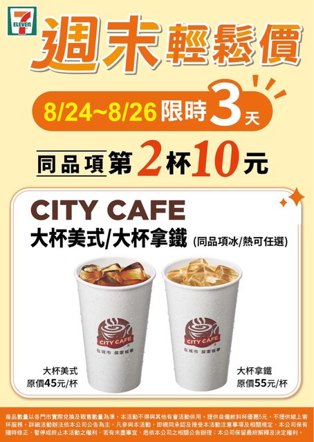 08/24-08/26 限時三天 大杯美式&大杯拿鐵,第二杯10元 大杯美式55元兩杯 大杯拿鐵65元兩杯 https://i.imgur.com/1L6i2Yn.jpg