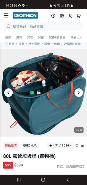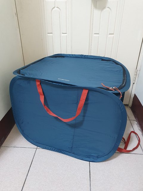 之前用大創的折疊收衣籃(網洞那種) 不太耐重 衣服裝滿拉繩都斷了 之前逛迪卡儂看到這個雖然說是垃圾桶 但我覺得拿來收衣服更適合 一家五口我是想拿來分類爸爸/媽媽/小孩 大概只差在不透氣吧 這兩天去迪卡儂買小孩的東西再看到這個品項 居然出清99了 99就很可以入手 要去頂樓收衣服來樓下折 分類丟一丟 也不怕重到繩子斷 展開滿大的 反正用完就折起來了 https://i.imgur.com/4w5HyVz.jpg