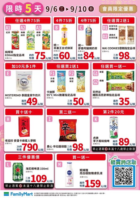 【活動名稱】:會員限時優惠 【便利商店/廠商名稱】:全家 【活動時間】:2023/09/06~2023/09/10 【活動內容】: https://i.imgur.com/evg3Vj2.jpg