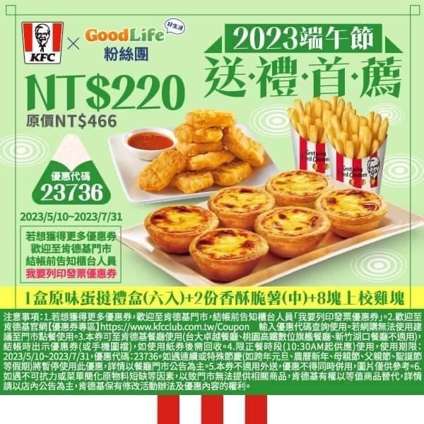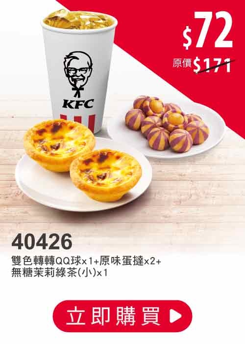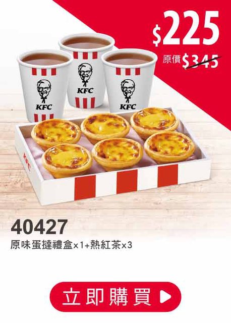 先附上肯德基官網的優惠代碼:40427 6顆蛋塔+3小杯熱紅茶 $225 https://i.imgur.com/Kp2bwVv.jpg
