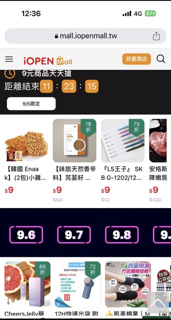 剛剛發現 7-11商城iOPEN Mall的活動 PANASONIC刮鬍刀只要9元欸!! 另外稍微整理了一下活動資訊: 9/5~9/7 99免運 加碼OPEN POINT再送50點 9/8-9/11 全站11%(雖然最高折到200而已XDD) 這幾天凌晨睡不著覺還可以搶一下滿千折999券和滿百折99券 https://i.imgur.com/3g4xN54.jpg