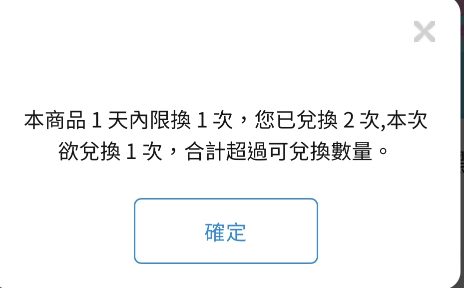 raulyuyu: 錯誤訊息寫:一天只能兌換一次,不是兌 101.9.128.43 09/06 11:02