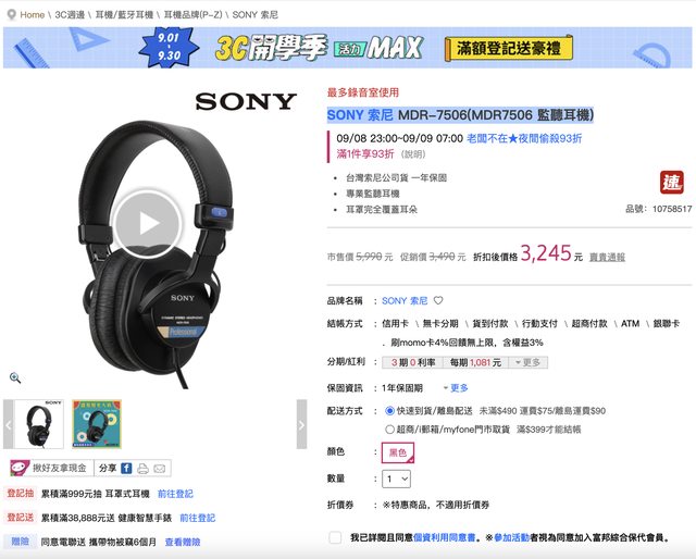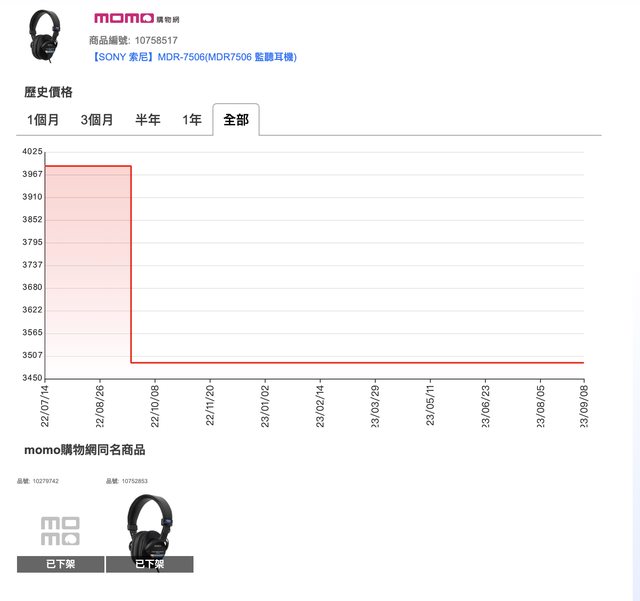 之前一直常駐價格在3,490 剛剛打開追蹤清單一看 萬年不特價的MDR7506居然特價了 折扣價格3,245 雖然只便宜了245 但韋禮安真的唱歌好好聽啊 https://i.imgur.com/wNQ5x4u.png