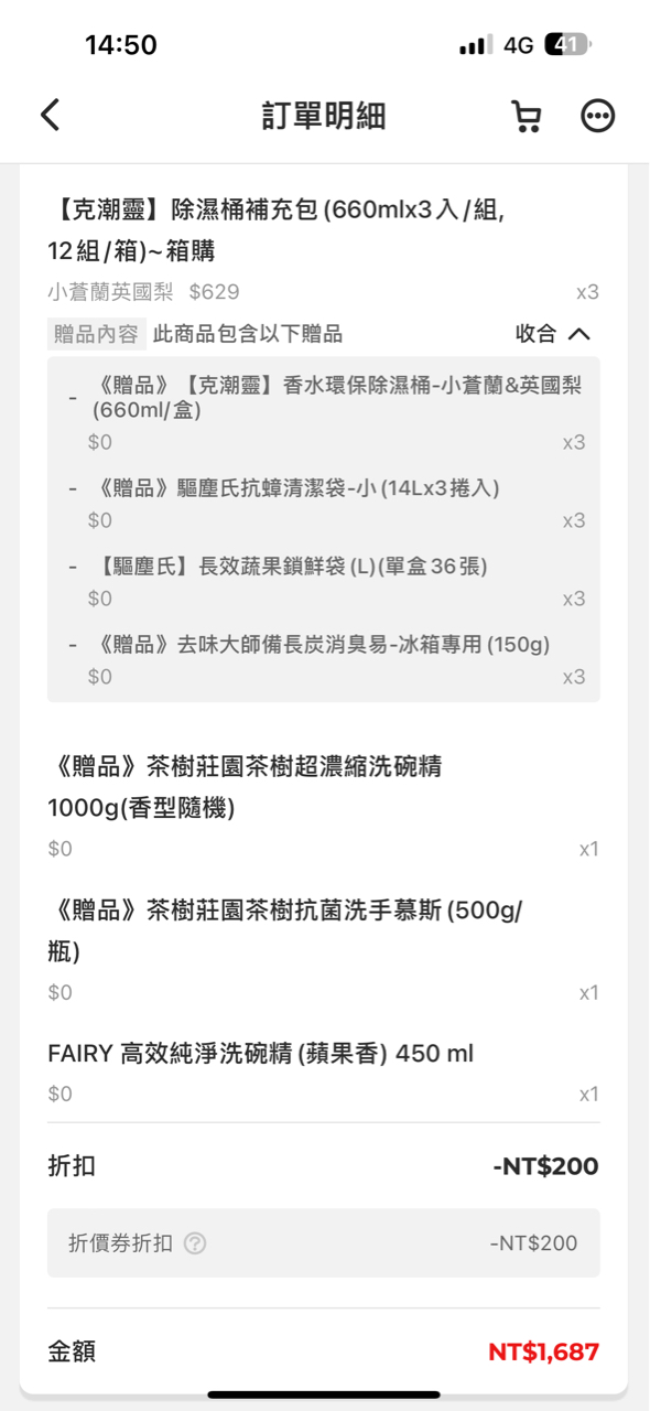 幾個朋友要一起湊單買克潮靈,所以昨天認真比價了一下 發現PC家的買起來最優惠,又送一大堆東西, 看了momo跟蝦皮要不是沒折價券就是送的沒PC多 買一箱兩箱三箱都有相對應的折價券,算一算覺得買三箱最便宜 https://imgur.com/a/4yXDrhd 滿1599折200,拍錢包綁PI卡總共回饋16%P幣 638*3-200=1714,+16%P幣算下來是1440換算平均一入不到14元 贈品超多除濕盒、洗碗精、洗手乳、保鮮袋、廚房油污、濕巾連胡同海苔都有XD) https://reurl.cc/QZ9oVZ https://reurl.cc/Oj0ogX 最後加一加總共送了15樣贈品 哈哈 https://imgur.com/a/jJXw4bI -- ※ 發信站: 批踢踢實業坊(www.ptt-club.com.tw), 來自: 150.117.203.29 (臺灣) ※ 文章網址: https://www.ptt-club.com.tw/Lifeismoney/M.1694829197.A.85D