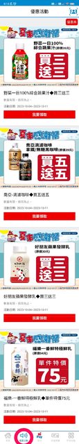 Hi-Life VIP → 優惠活動 每週三凌晨0時更新優惠券 本週有 喬亞咖啡 買5送5 超讚! 有限量 記得領! https://i.imgur.com/8TWSJyp.jpg
