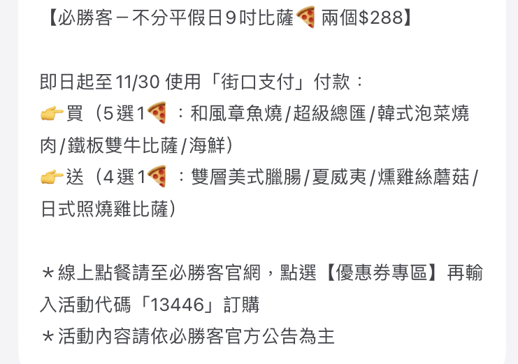 推 TZUYIC: 網路上一大堆 兩個小披薩288元的折價碼, 101.136.90.107 10/23 16:28