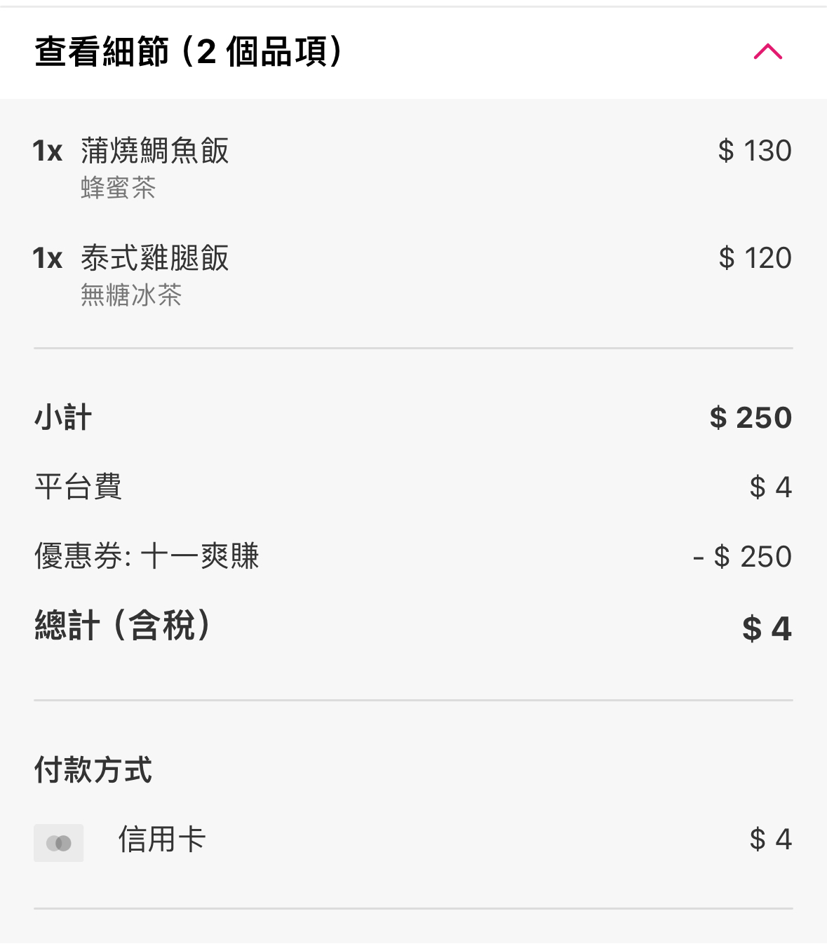 → joker4946: 我折到0元就沒收平台費,訂單還在準備 118.232.24.154 11/04 11:06